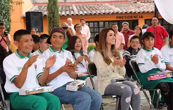 En las instalaciones del DIF municipal de San Cristóbal de Las Casas, Anahí de Velasco sorprendió a los adolescentes que asisten a la Secundaria para Niños con Discapacidades (Procanet), a quienes obsequió una marimba y juguetes.