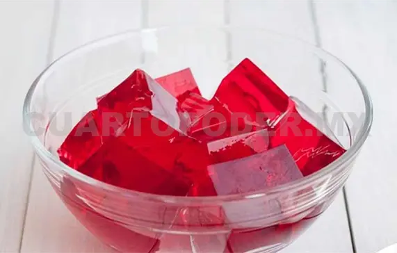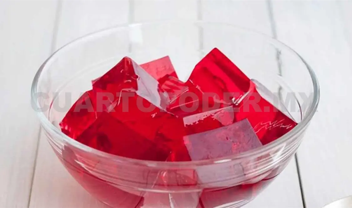 Indicó que la gelatina es un postre hipocalórico elaborado a partir de grenetina, una proteína extraída de los huesos y pieles de mamíferos, que cuando se encuentra en agua a temperaturas menores a 80 °C, se rompen sus enlaces intermoleculares e intramoleculares para formar una red polimérica.