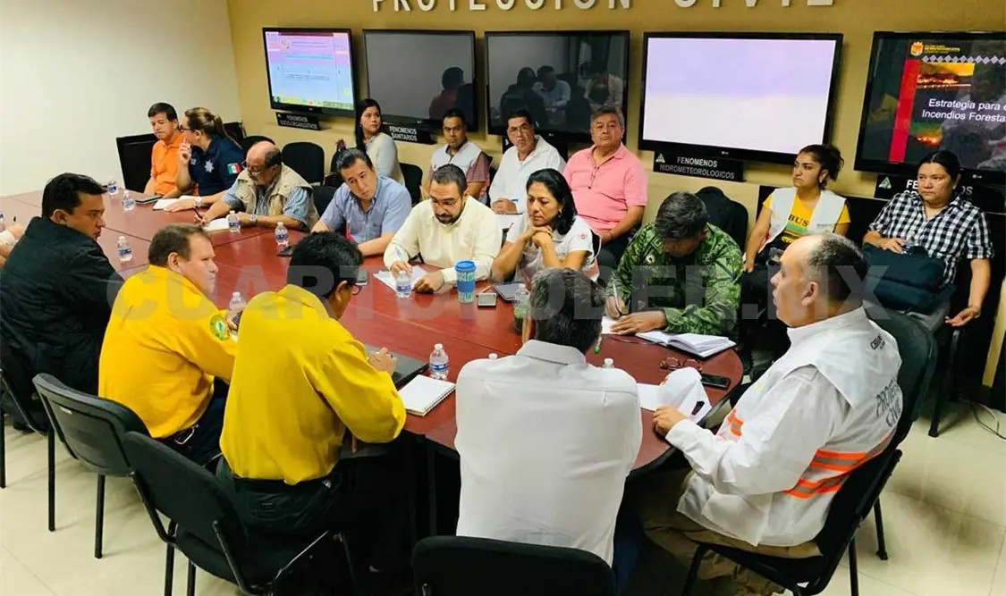 El Comité Estatal de Emergencias, donde se reunieron representantes de Protección Civil estatal y municipales, Secretaría de la Defensa Nacional (Sedena), la Comisión Nacional de Áreas Naturales Protegidas (Conanp) y la Conafor realizaron una sesión extraordinaria la mañana de este domingo con el objetivo de reforzar la estrategia de combate de incendios forestales prioritarios.