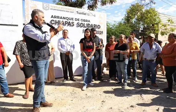 El presidente municipal de Tuxtla Gutiérrez, Ángel Torres, en compañía de habitantes de la colonia Chiapas Solidario, dio el banderazo de inicio a los trabajos de pavimentación de la calle Durazno, entre las avenidas Sandía y Piña, con lo que se concretará un circuito de movilidad que generará grandes beneficios en materia de movilidad y conectividad.