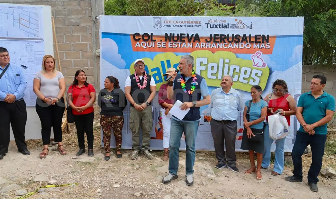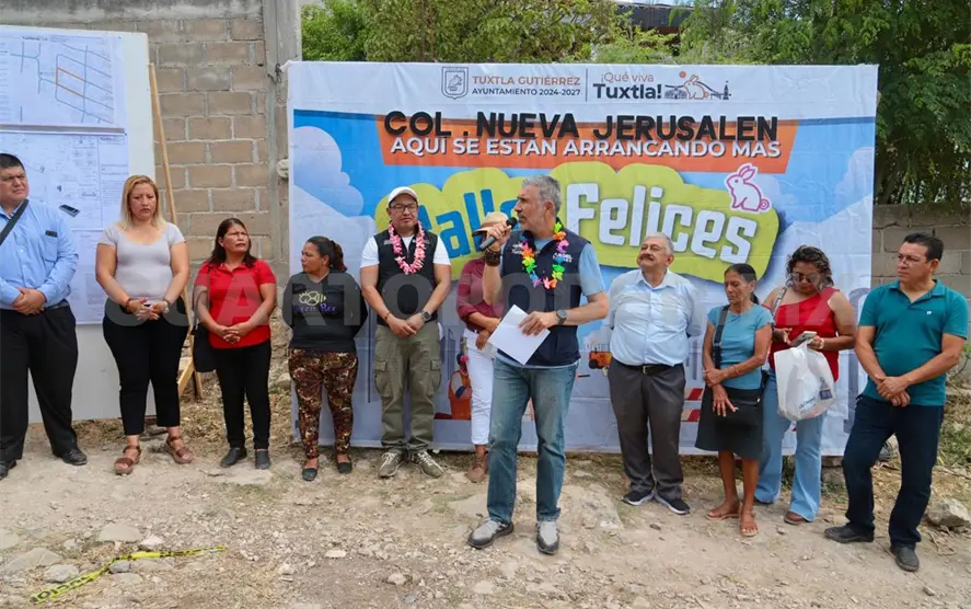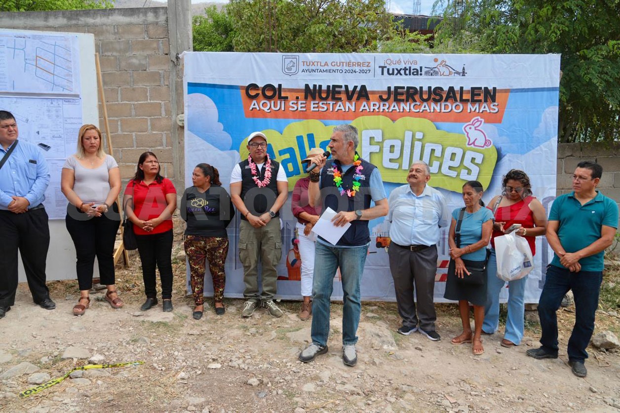 El presidente municipal de Tuxtla Gutiérrez, Ángel Torres Culebro, encabezó el banderazo de una calle más del programa Calles Felices, en la colonia Nueva Jerusalén, acompañado de vecinas y vecinos quienes atestiguaron que el alcalde cumple su palabra, pues prometió obras y hoy, dijeron, las estamos iniciando.