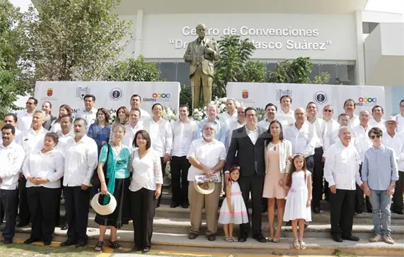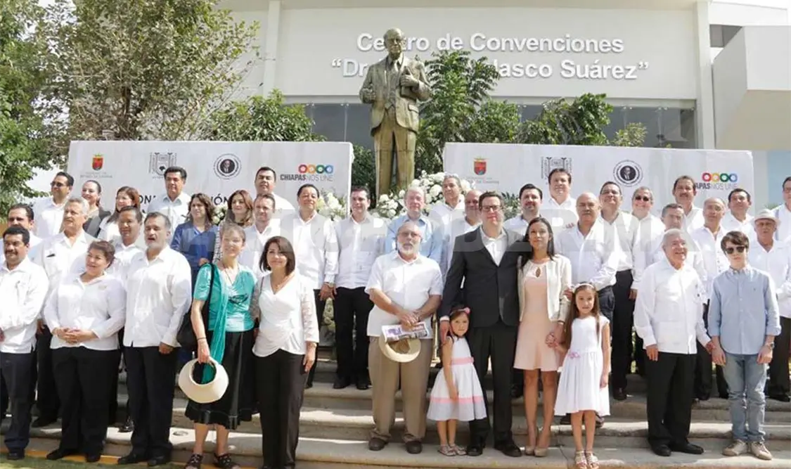 Señaló que, al ver al doctor Velasco Suárez con su mano extendida, como se asemeja una de las estatuas al interior de la Unach, evoca a la ayuda para levantar al enfermo, al que vive en miseria o a quien sufre una justicia.
