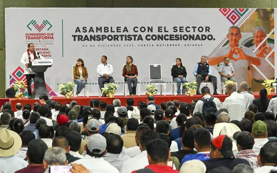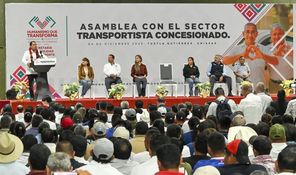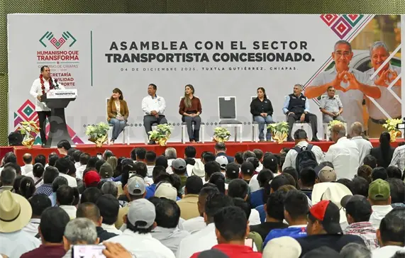 En Tuxtla Gutiérrez, el gobernador Eduardo Ramírez Aguilar asistió a la asamblea con el sector transportista concesionado, donde anunció que el gobierno de la Nueva ERA brindará seguridad social, acompañamiento para la renovación del parque vehicular y programas de capacitación para que este gremio se convierta en promotor del turismo en Chiapas. Enfatizó que estas acciones, de carácter sensible y humanista, buscan mejorar la calidad del servicio, garantizar los derechos laborales y fortalecer los ingresos de quienes integran este sector.