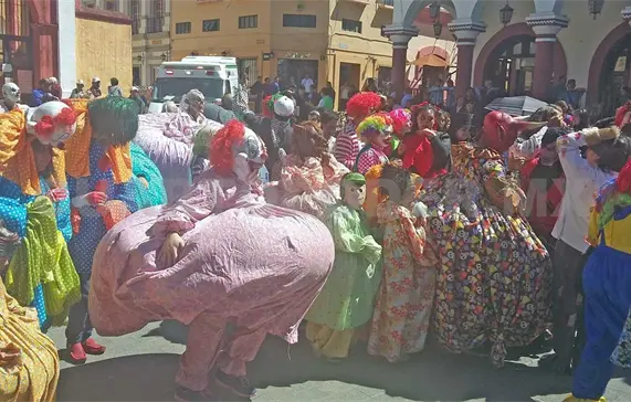 Una de las características del desfile del barrio de La Merced es la presencia de los llamados ‘panzudos’, hombres y mujeres que se colocan alrededor de la cintura neumáticos cubiertos por grandes faldas y coloridas faldas, además de usar máscaras de diversos personajes.
