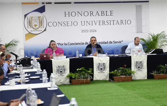 Al dirigirse a los consejeros y consejeras universitarias, acompañado de la secretaria general, María Eugenia Culebro Mandujano y del abogado general, Enrique Pimentel González Pacheco, el rector dijo que este logotipo permitirá reforzar el espíritu de identidad y unidad que nos caracteriza entre la comunidad universitaria.