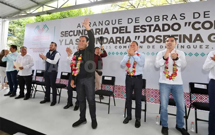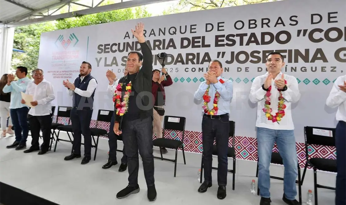 En Comitán de Domínguez, el gobernador Eduardo Ramírez Aguilar dio inicio al eje de Infraestructura Educativa en Chiapas, con el arranque de obras en las Escuelas Secundarias del Estado “Comitán” y “Josefina García”, que comparten instalaciones, así como en la Escuela Preparatoria “Comitán”. Estas acciones tienen el objetivo de garantizar espacios dignos y de calidad a la comunidad escolar.