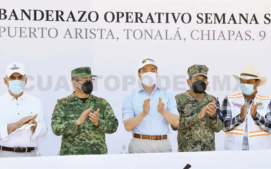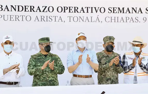 Desde Puerto Arista, en el municipio de Tonalá, se llevó a cabo el arranque del Operativo “Semana Santa Segura 2022”, en el que participan elementos de las distintas corporaciones de seguridad pública, protección civil, turismo y salud, cuerpos de apoyo como Cruz Roja y Bomberos, además del respaldo del Ejército Mexicano, Marina y Guardia Nacional, con el objetivo de brindar protección, asistencia y auxilio a visitantes que acudirán a los diferentes destinos turísticos de Chiapas.