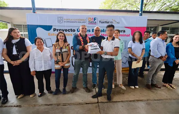 Acompañado de la directora general del DIF Municipal, Estephanie Frías Córdova, el alcalde Ángel Torres explicó que el objetivo del “Proyecto Útiles Escolares para Estudiantes de Educación media terminal Tux-Útiles”, es contribuir en la permanencia educativa de las y los estudiantes que cursan la educación media superior.