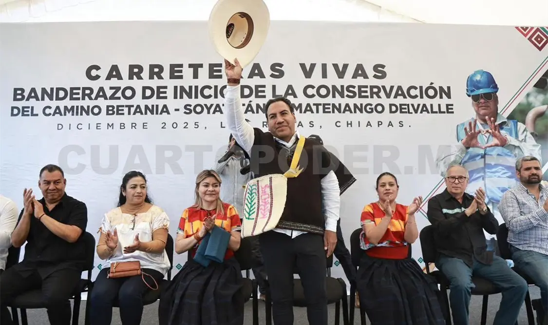 El gobernador Eduardo Ramírez Aguilar encabezó el inicio de los trabajos de conservación del camino Betania–Soyatitán–Amatenango del Valle, una obra que contempla una inversión superior a los 16.5 millones de pesos y beneficiará a más de 62 mil habitantes. Durante el arranque, destacó que el gobierno de la Nueva ERA trabaja con capacidad, talento y compromiso para transformar la infraestructura carretera de Chiapas.
