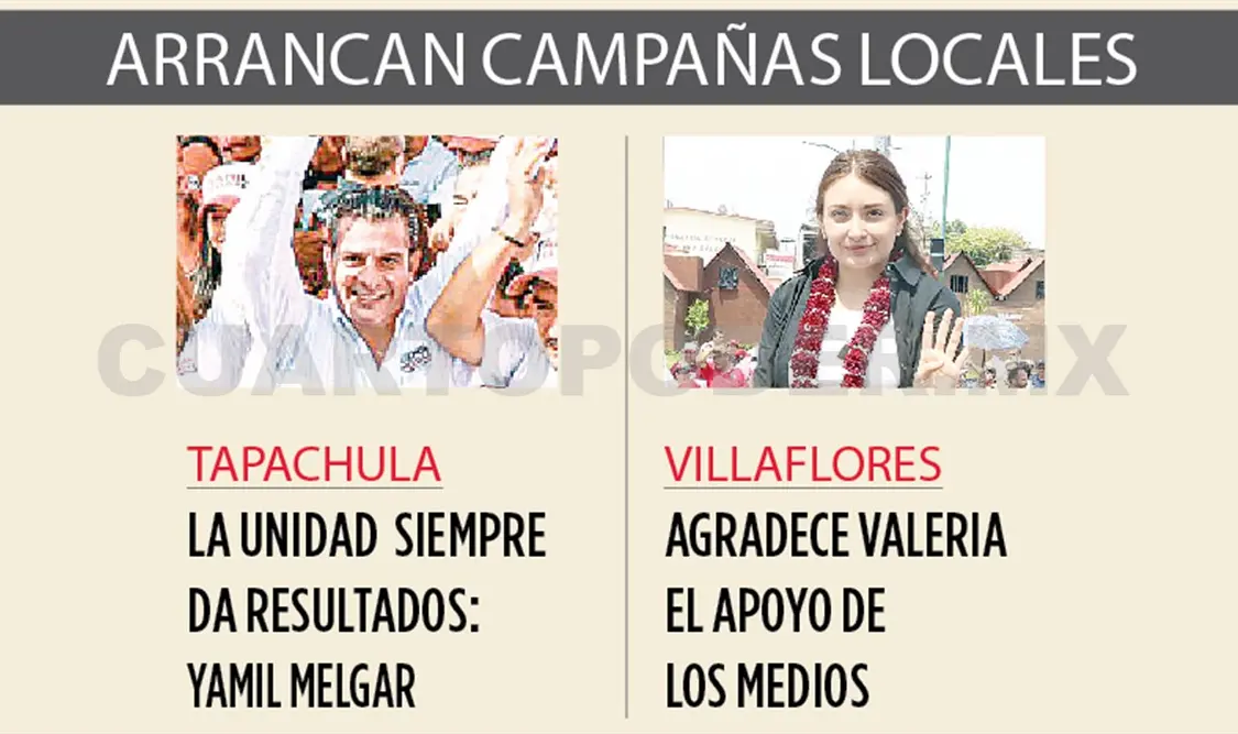 Desde el primer minuto del martes, los candidatos y las candidatas a las presidencias municipales de los ayuntamientos de Chiapas empezaron con sus campañas políticas. Contrasta la participación múltiple en algunos municipios, donde llegan a superar hasta una docena de aspirantes; contrario al caso de Tuxtla Gutiérrez, en donde solo compiten tres hombres por el mismo cargo.