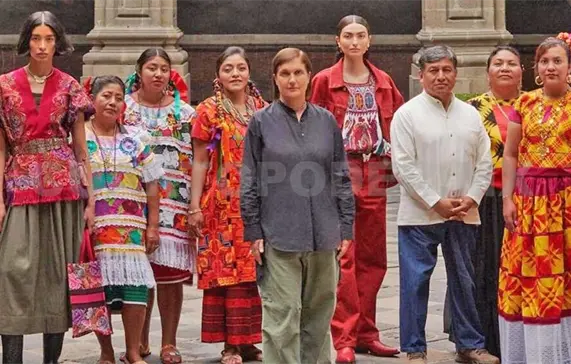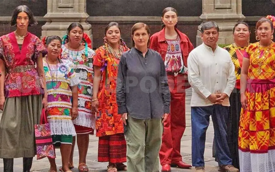 La prenda fue hecha en colaboración con artesanos y artesanas de la cooperativa Sna Jolobil en San Cristóbal de Las Casas, pero señalaron que el crédito fue para Pedro Meza, originario de Tenejapa.