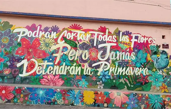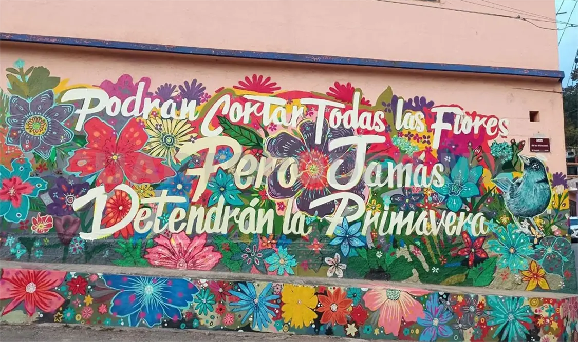 El reconocido artista plástico Dyg’nojoch presenta en el popular barrio de Cuxtitali de San Cristóbal de Las Casas, su mural ¡Sí a la vida!, con la frase del poeta Pablo Neruda: ¡Podrán cortar todas las flores, pero jamás detendrán la primavera! Porque “el arte es una manifestación del amor, de la resiliencia, es un grito de sí a la vida en medio de la muerte que quiere opacar la alegría y la esperanza”.