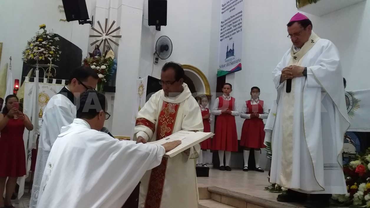 Finalmente, el arzobispo Fabio Martínez escuchó la profesión de fe del nuevo encargado de la parroquia, para posteriormente salir y entregarle las llaves, llevándolo hasta el campanario donde tocó las campanas, en su primer llamado a misa, para luego entrar y dar su homilía como párroco de la iglesia católica de Reforma.