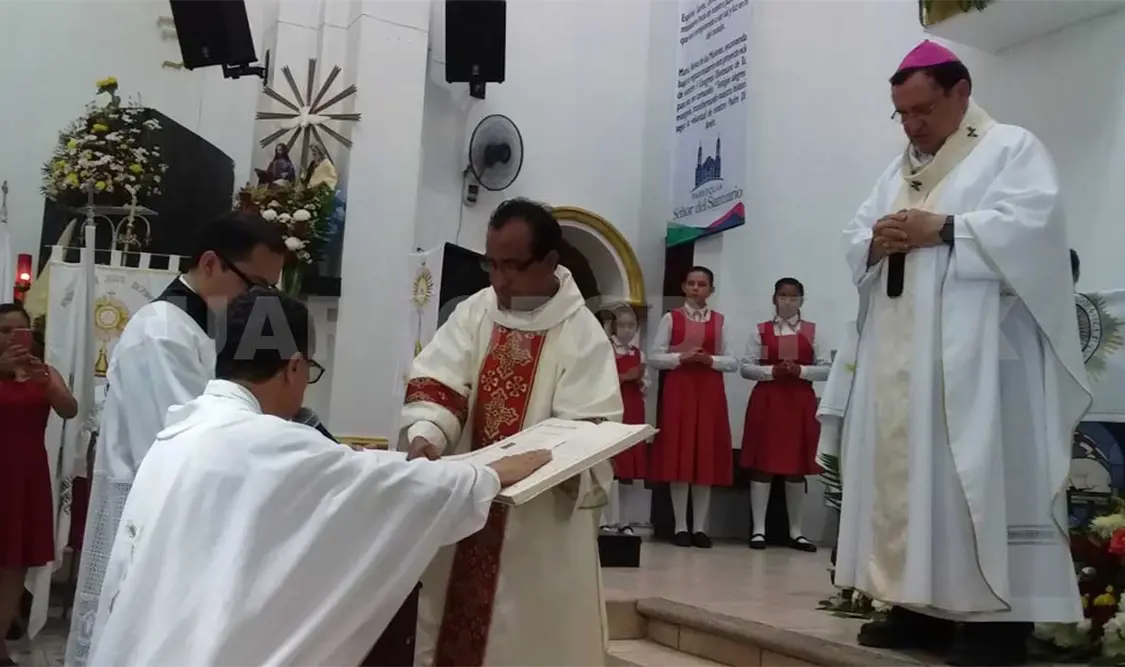 El nuevo párroco llegó acompañado de arzobispos y sacerdotes siendo recibido por vicarios, grupos religiosos y fieles católicos, quienes caminaron hasta la parroquia del Señor del Santuario donde monseñor Fabio Martínez Castilla, arzobispo de la diócesis de Tuxtla Gutiérrez, dio posesión al nuevo pastor espiritual de esta parroquia.