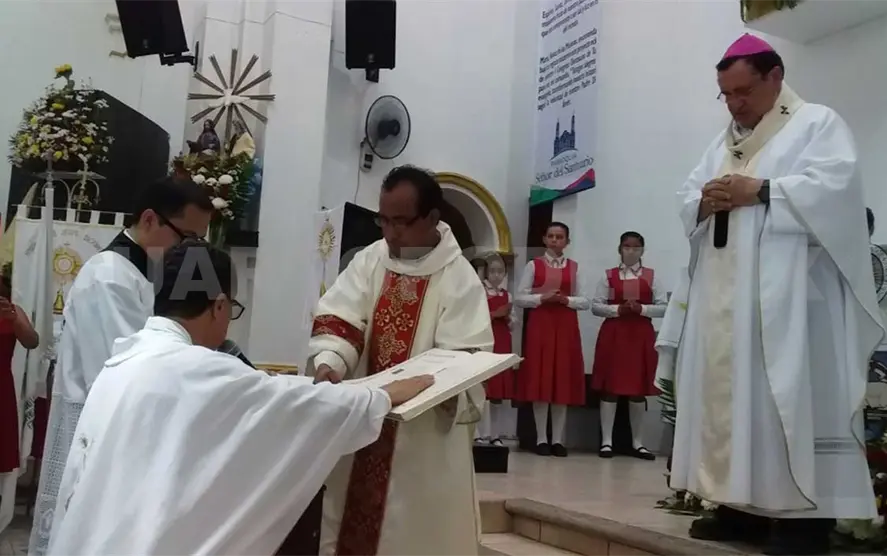 “Cada sacerdote, aunque son diferentes, es presencia del señor Jesús en medio de la comunidad” dijo, además pidió a la comunidad colaborar y cuidar al sacerdote que es el nuevo paso de Jesús por esta comunidad.