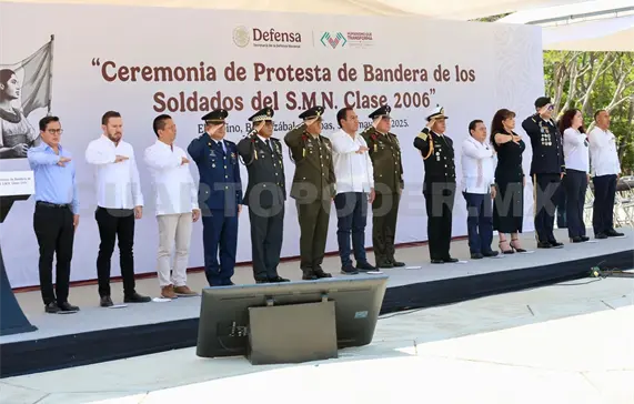 El gobernador Eduardo Ramírez Aguilar asistió a la Ceremonia de Toma de Protesta de Bandera de los Soldados del Servicio Militar Nacional (SMN) Clase 2006, remisos y mujeres voluntarias, encabezada de manera virtual por la presidenta de la República y comandanta suprema de las Fuerzas Armadas, Claudia Sheinbaum Pardo, en el marco del 163 Aniversario de la Batalla de Puebla.