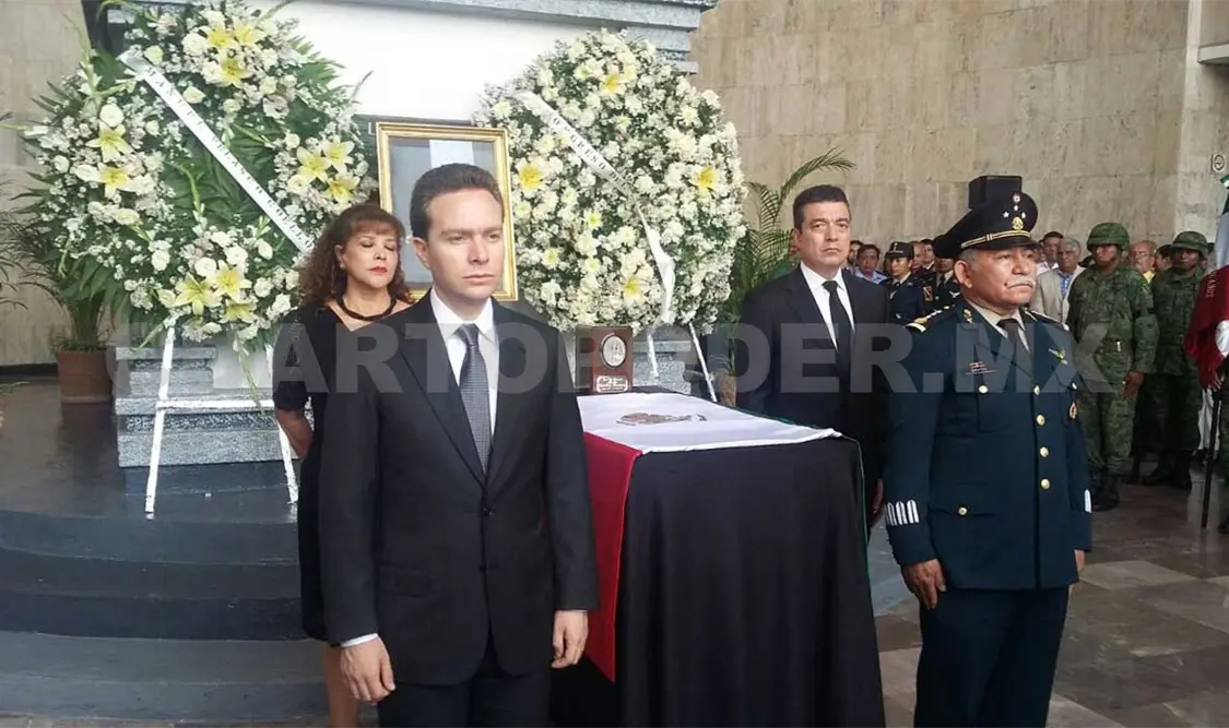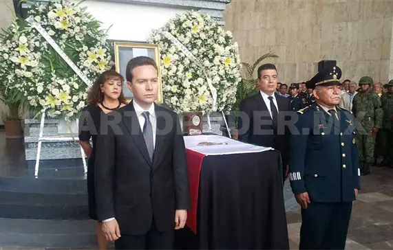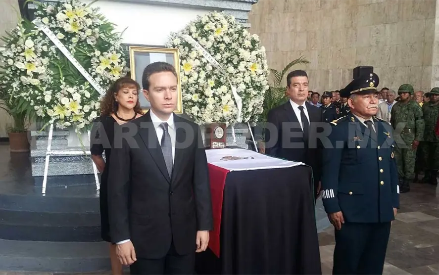 Junto a la vicepresidenta de la Mesa Directiva, Patricia del Carmen Conde Ruíz; el presidente del Tribunal Superior de Justicia y del Consejo de la Judicatura del Estado, Rutilio Escandón Cadenas, y el comandante de la VII Región Militar, general Luis Alberto Brito Vázquez, el gobernador montó guardia de honor ante la urna con las cenizas del general Absalón Castellanos.