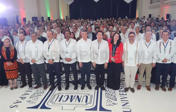Desde la Universidad Autónoma de Chiapas (Unach), y ante el secretario General Ejecutivo de la Asociación Nacional de Universidades e Instituciones de Educación Superior (Anuies), Luis González Placencia, el mandatario señaló que este encuentro hace posible que los espacios educativos de diferentes países, colaboren y pongan a disposición instrumentos para enriquecer la experiencia educativa y preparen a las y los estudiantes para prosperar.