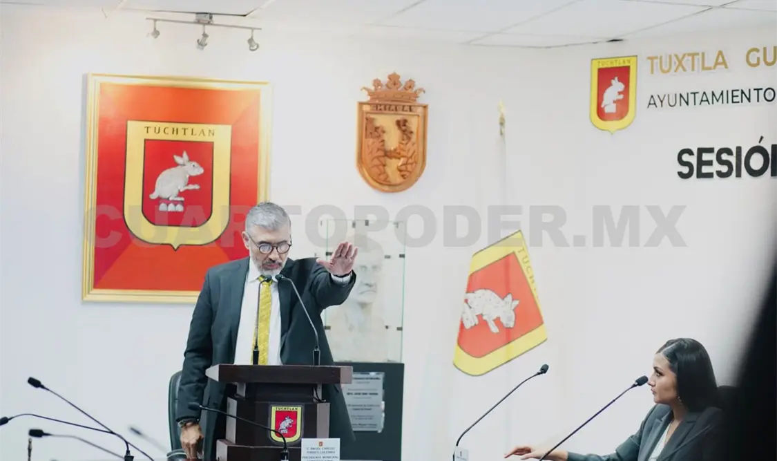 Ángel Torres Culebro, presidente municipal de Tuxtla Gutiérrez, asumió el cargo acompañado de su cabildo por medio de una sesión solemne realizada la media noche de este martes en las instalaciones de Palacio Municipal
