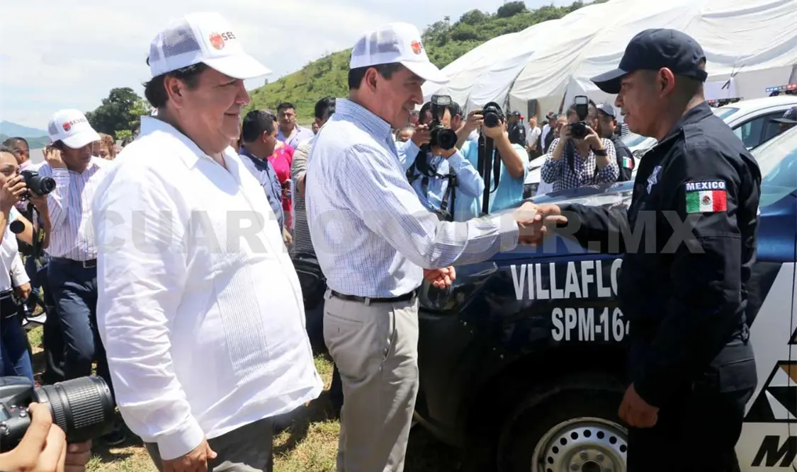 Dijo que los cuerpos de seguridad deben contar con los elementos necesarios para dar seguridad y paz al pueblo, la gente ha recuperado la confianza en las instituciones, agradeció al alcalde de Villaflores por su ser un buen anfitrión y por recibirlo de manera seria, importante y con mucho calor humano.