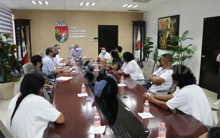 A fin de coordinar acciones que garanticen la paz y la tranquilidad en esta región, autoridades de Bienes Comunales de la Zona Lacandona, encabezados por el comisionado Bernardo Chankin Chana Kin, sostuvieron reunión de trabajo con el fiscal general del Estado, Olaf Gómez Hernández.