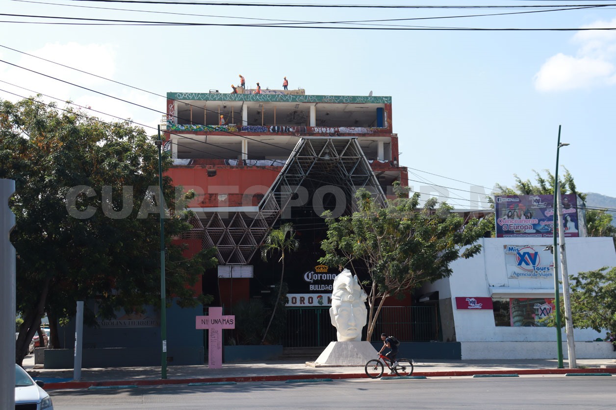 En recorrido por la zona, los albañiles explicaron que la demolición se está realizando por etapas descendentes, privilegiando medidas de seguridad, ante el debilitamiento de columnas y lozas de carga.