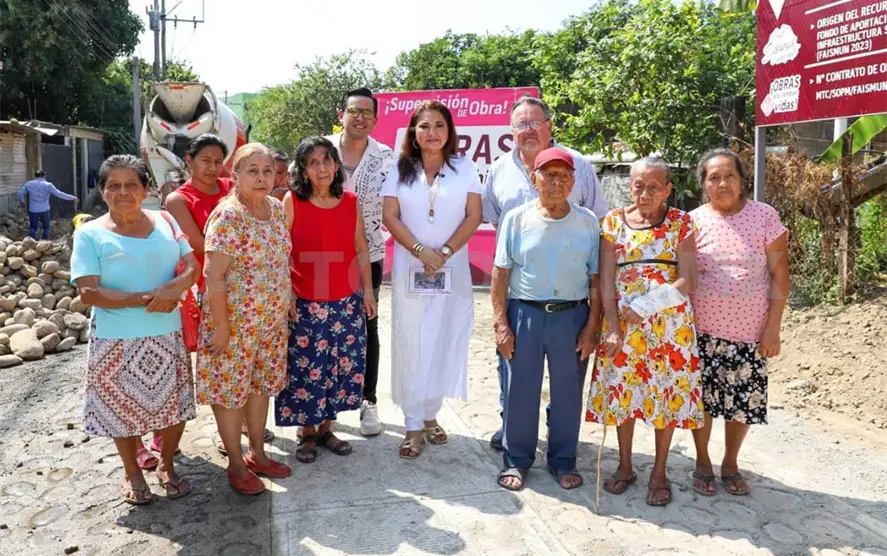 La alcaldesa interina de Tapachula, Gladiola Soto Soto, acompañada del regidor Erik Hintze Moreno, el secretario de Obras Públicas Municipales, Andrés Santiago Martínez, y vecinos de la colonia, recorrieron la obra donde se invierten dos millones 436 mil 042 pesos del Fondo de Aportaciones para la Infraestructura Social Municipal (Faismun-2023).