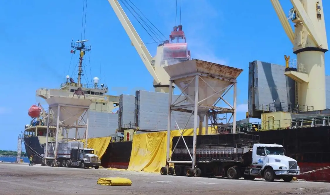 En las últimas semanas arribaron los buques granaleros Alma del Mar y M/V Mar de California, ambos procedentes de Topolobampo, Sinaloa, para descargar 11 mil 930 y 14 mil 882.89 toneladas de maíz, cada uno.