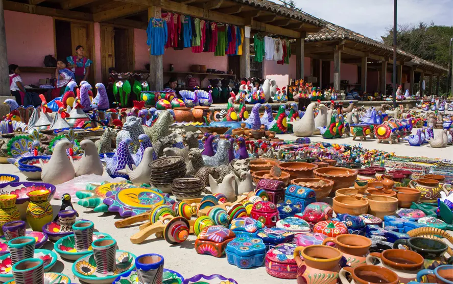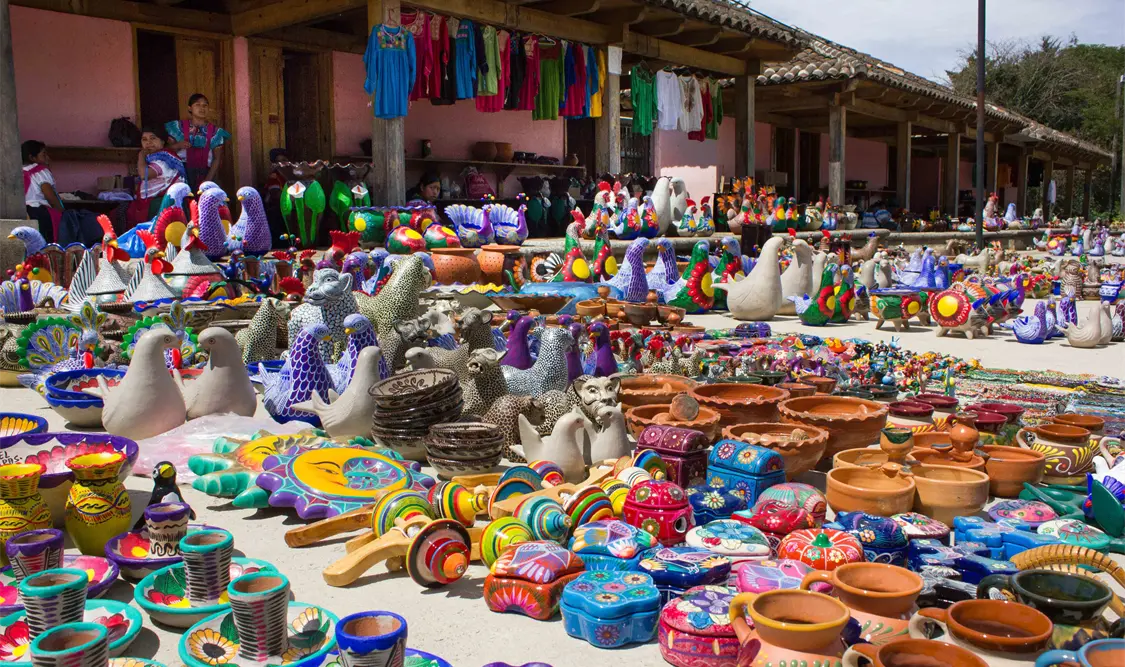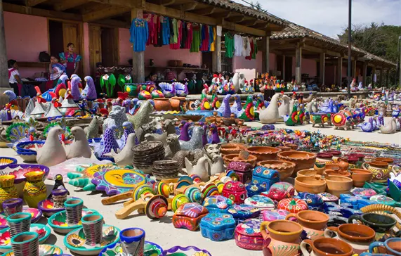 Los negocios llenos de color e identidad chiapaneca se ubican a las orillas de la carretera federal hacia Comitán, en donde cada artesanía es conocida por la utilización de métodos prehispánicos para su elaboración .