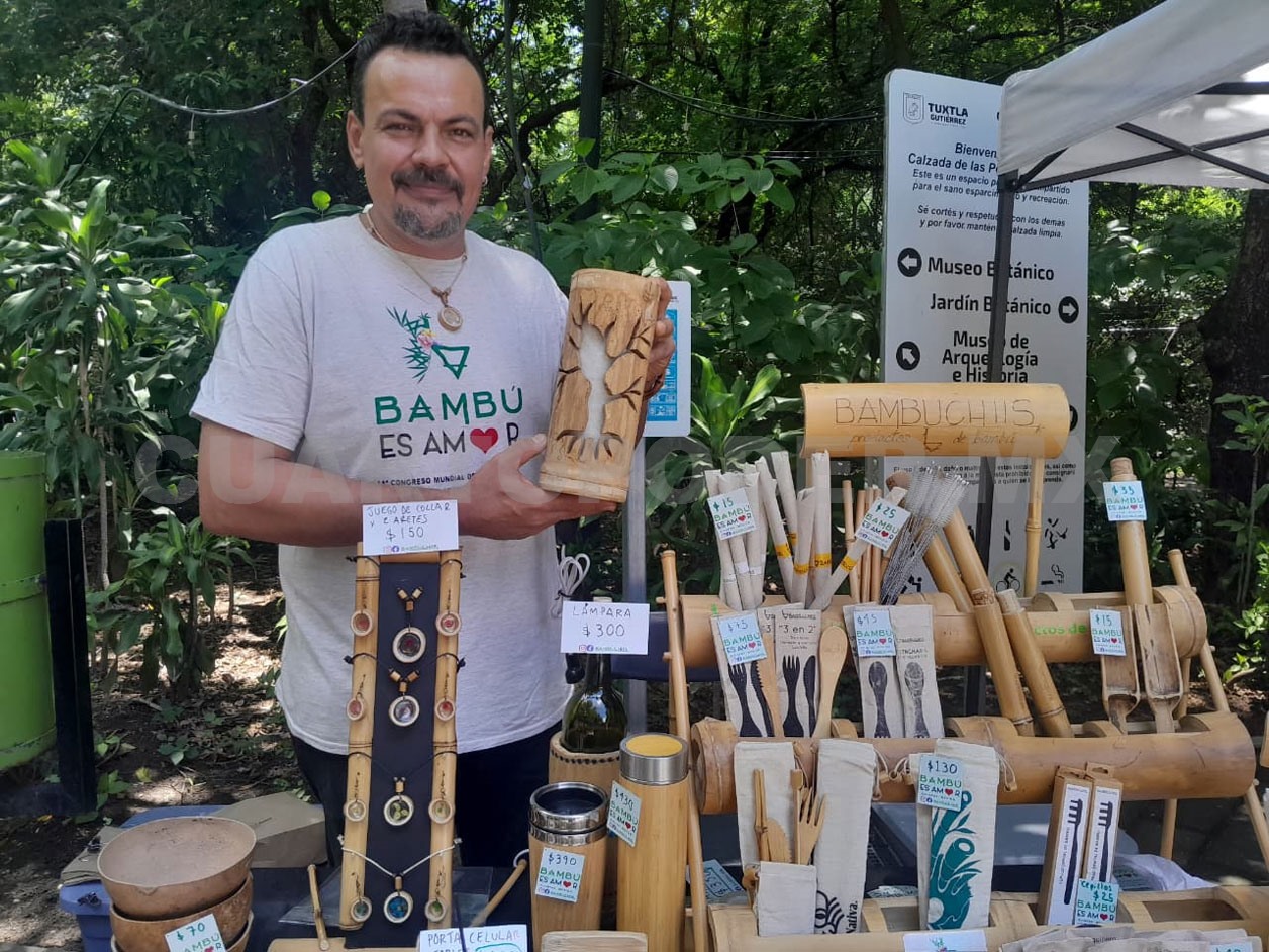 En Tuxtla Gutiérrez, el bambú cobra vida en las manos de Arturo Gamboa, artesano chiapaneco y creador del proyecto Bambuchiis, una iniciativa que busca ofrecer productos artesanales, biodegradables y duraderos como alternativa al plástico; destacando la importancia sobre la conciencia ambiental ante la problemática del consumismo actual. La iniciativa, según el artesano, nació de la idea de invitar a la ciudadanía a utilizar productos naturales y 100 % biodegradables.