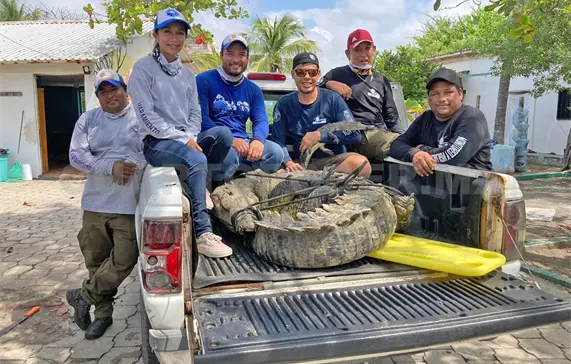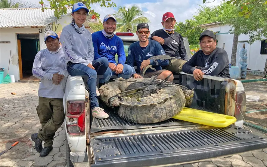Las denuncias ciudadanas activaron el protocolo SOS Cocodrilo y el equipo técnico del Campamento Tortuguero del Santuario Playa Puerto Arista de la Conanp y el grupo comunitario de atención a varamientos de megafauna marina e interacciones humano-cocodrilo, siendo capturado para su posterior traslocación.