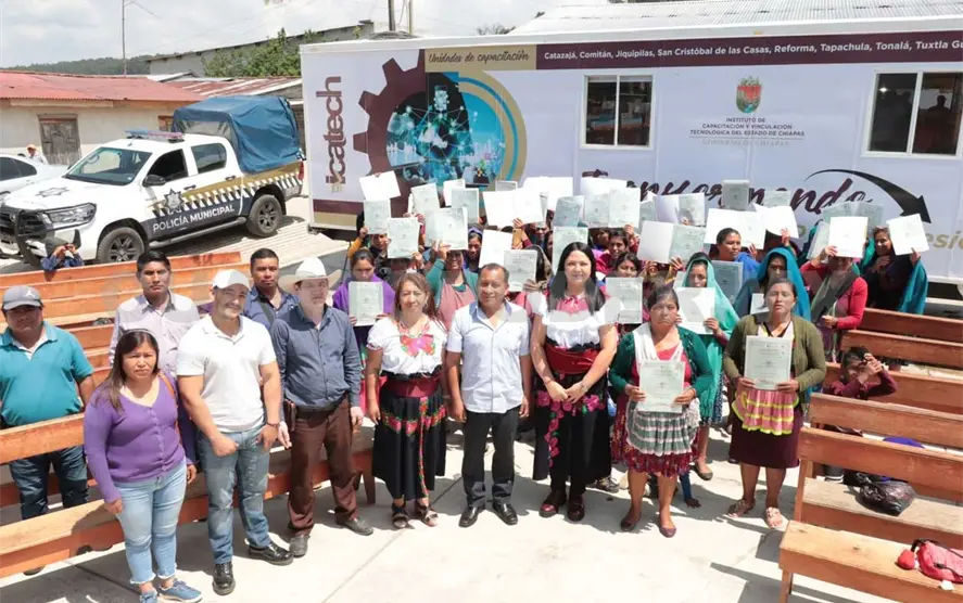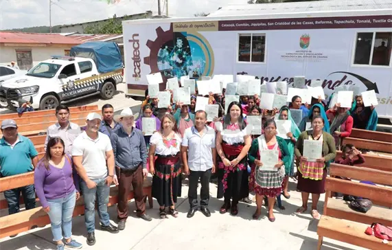 Con la finalidad de combatir el rezago social en las comunidades, el Instituto de Capacitación y Vinculación Tecnológica del Estado de Chiapas (Icatech) lleva a cabo el Programa “Aulas Móviles, Capacitando con el corazón en tu municipio”, con el cual se beneficiaron mujeres de la comunidad El Carmen Yalchuch del municipio de Huixtán, Chiapas.