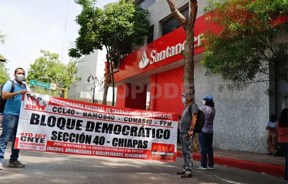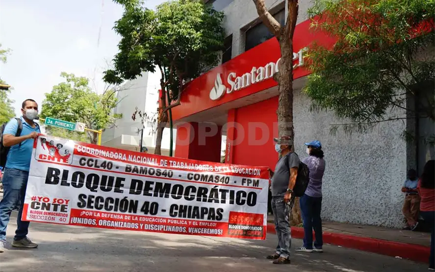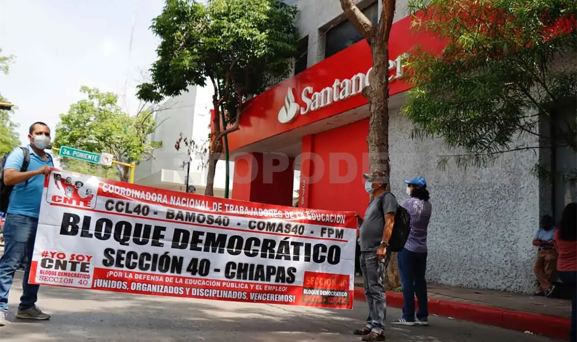Asimismo, los docentes lanzaron la advertencia de que en caso de ignorar las demandas hoy planteadas, así como los argumentos jurídicos, los maestros tomarán de manera permanente todas las sucursales bancarias de Santander localizadas en Chiapas.