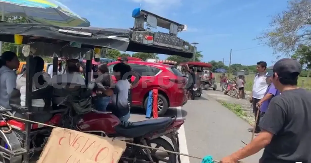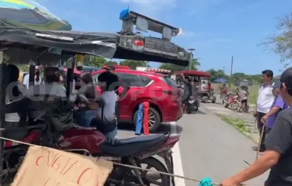 Pobladores bloquearon la carretera entre Tapachula y Puerto Madero, tras suscitarse un accidente entre dos motociclistas.