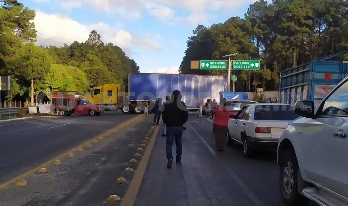 Armados con palos, los indígenas tzotziles se apostaron poco después de las 6:00 horas en el kilómetro 46 de la vía de cuota San Cristóbal-Tuxtla Gutiérrez y en la entrada poniente de la carretera y en Rancho Nuevo.