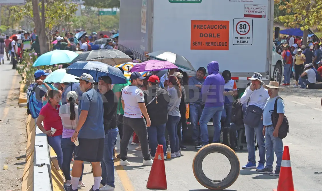 Los integrantes del magisterio instalaron un bloqueo total, lo que generó un congestionamiento vial, obligando a los automovilistas a buscar vías alternas para llegar a sus destinos, mientras que muchas personas tuvieron que caminar en búsqueda de un transporte público.