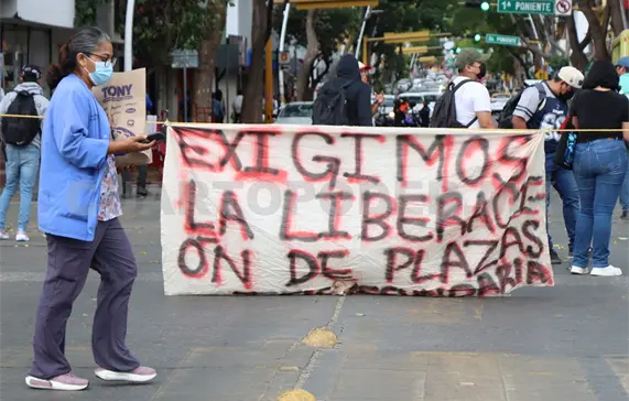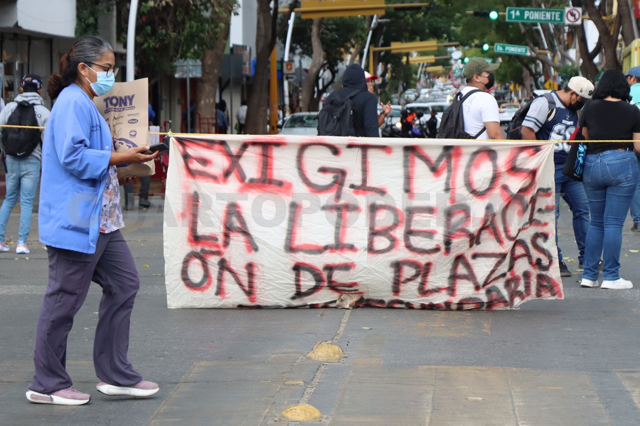 Este lunes egresados de distintas escuelas normales del estado realizaron un bloqueo en el centro de Tuxtla Gutiérrez, en protesta por la falta de liberación de 150 plazas docentes prometidas por las autoridades educativas.