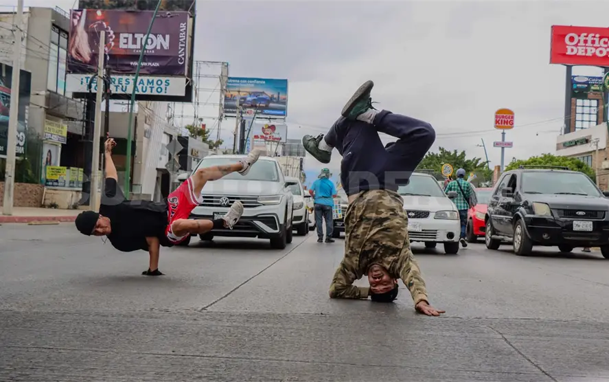 Mientras el semáforo se pone en rojo y a la vista de cientos de automovilistas que transitan por el bulevar Belisario Domínguez y Manuel Velasco Suárez, bajo el puente colores Francisco Mejía (bboy Mejías) y Edward Hernández (bboy Nuevo) ejecutan diversas transiciones o posturas llamadas Freeze y Footwork, para ganarse algunas monedas y llevar el sustento a la familia.