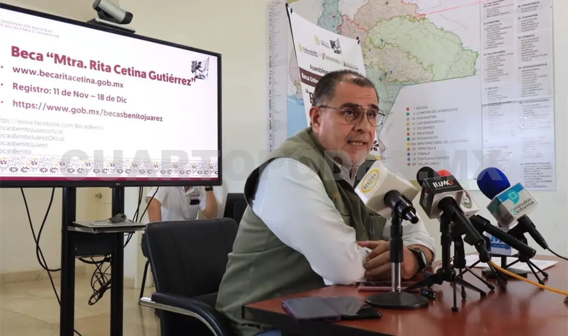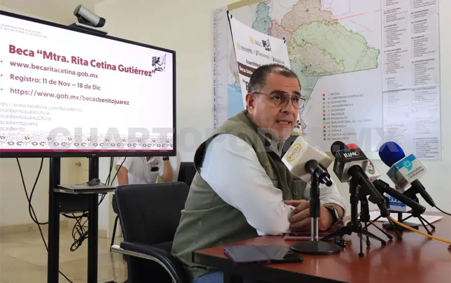 Como parte del proceso de inscripción para que estudiantes del nivel secundaria reciban la beca Rita Cetina Gutiérrez, el titular de la Oficina de Representación Estatal Becas para el Bienestar en el Estado de Chiapas, Ernesto Gómez Pananá, adelantó que el personal se desplazará a campo para atender a las escuelas que enfrentan alguna complejidad, y la atención se puedan brindar de manera presencial para que nadie se quede fuera de este apoyo.