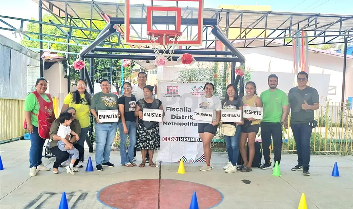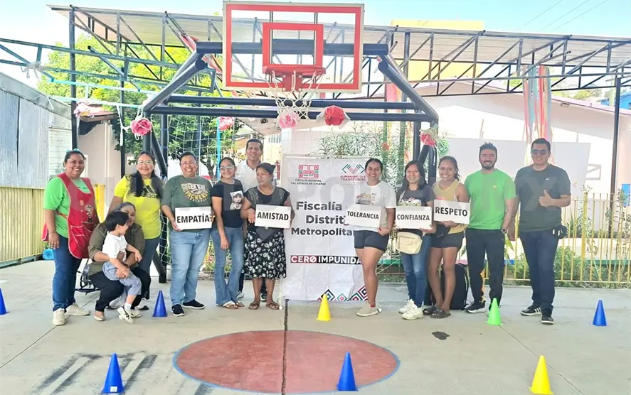 La Fiscalía de Distrito Metropolitano, en seguimiento a las acciones del Decálogo Humanista para la Protección de Mujeres, Niñas, Niños y Adolescentes, llevó a cabo una jornada de prevención en centros escolares de nivel básico, en la ciudad de Tuxtla Gutiérrez.