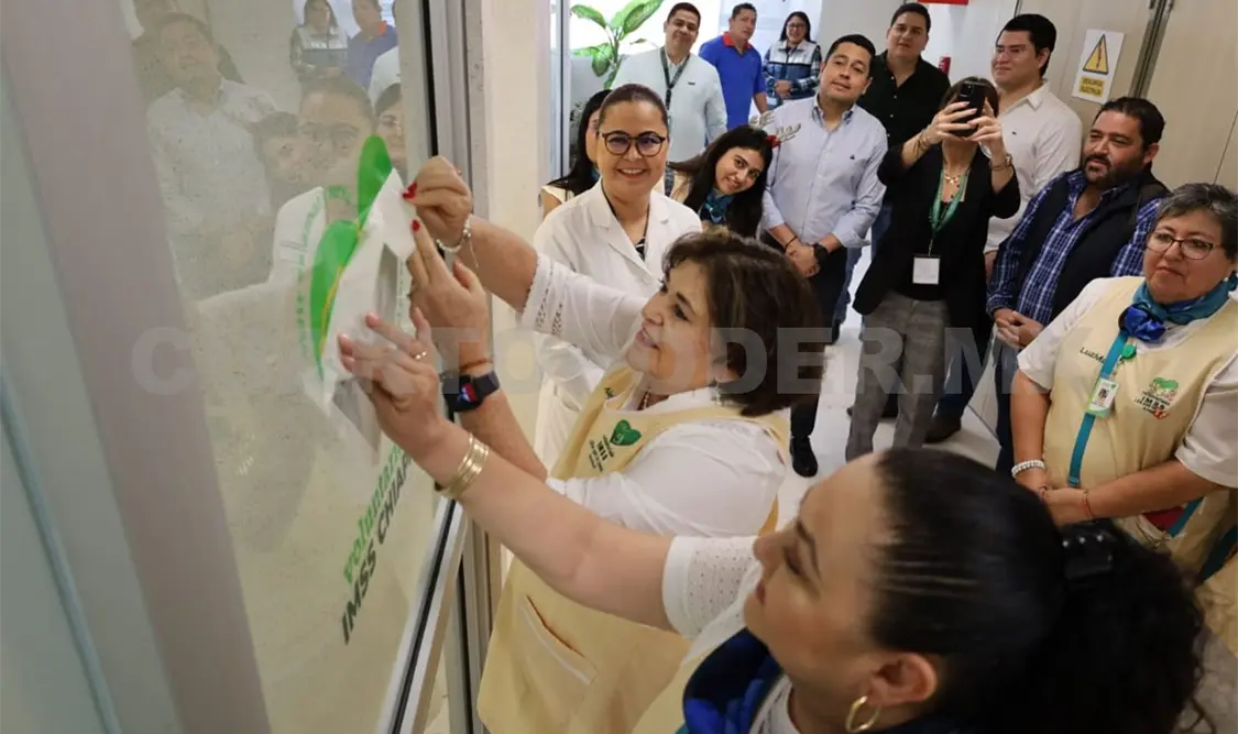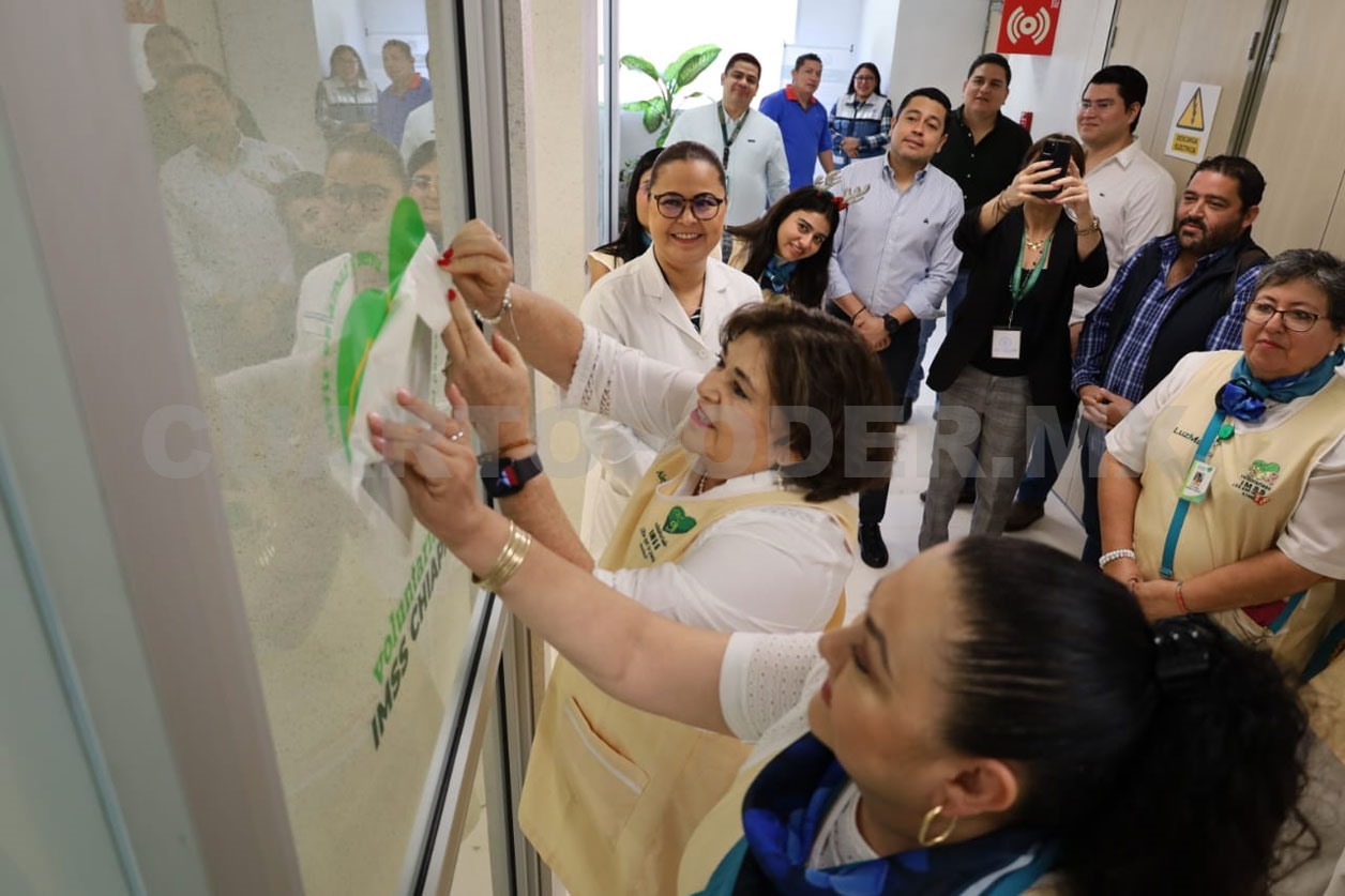 La doctora Alejandra Aburto, presidenta del Voluntariado IMSS, visitó este nuevo espacio junto a Herna Martha Rizo Gómez, coordinadora ejecutiva del Voluntariado IMSS y el titular del IMSS, Hermilo Domínguez Zárate, quienes cortaron el listón de este nuevo espacio que redefine la experiencia hospitalaria de alta especialidad.