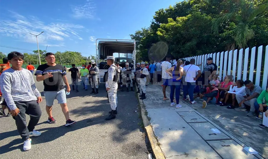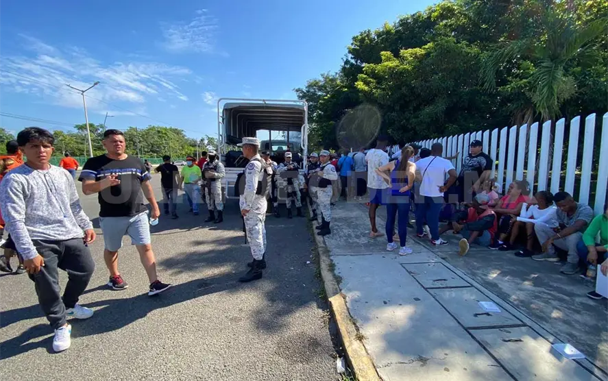 El Centro de Atención a Migrantes es resguardado por personal de la Guardia Nacional, ya que se han presentado algunos casos de inconformidad, en virtud a que, dicen los extranjeros que no les dan solución.