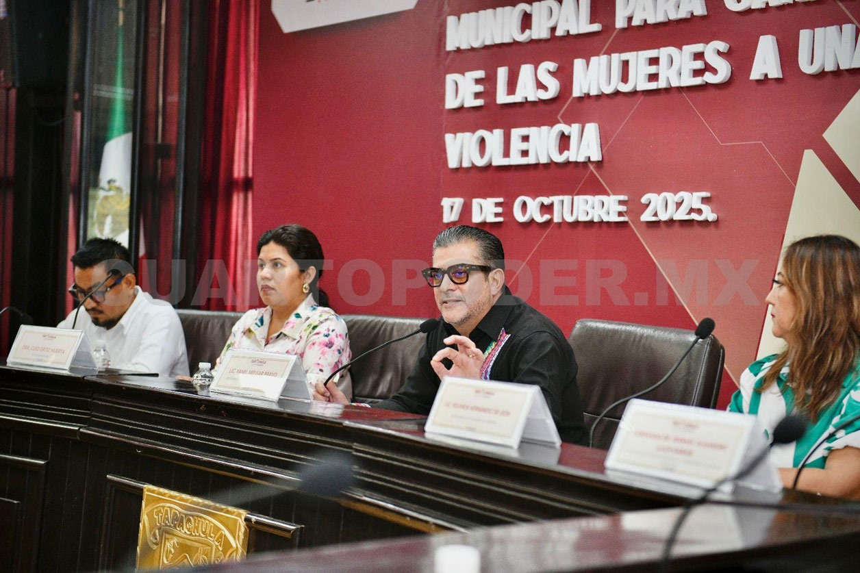 En el marco de la Tercera Sesión Ordinaria del Consejo Municipal para Garantizar el Derecho de las Mujeres a una Vida Libre de Violencia, el presidente municipal, Yamil Melgar, reafirmó el compromiso de su administración de trabajar con acciones firmes orientadas a erradicar la violencia de género y promover entornos seguros, respetuosos y dignos en beneficio de las tapachultecas.