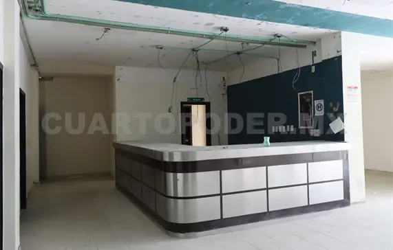 Las salas principales tienen las instalaciones eléctricas arrancadas; solo algunos cuartos, restos de mobiliaria médica.