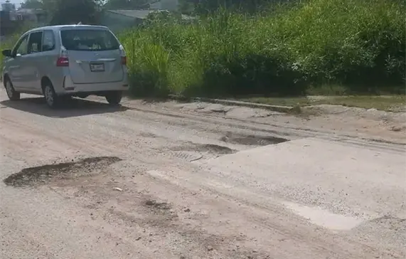 El problema son los tremendos baches que se han generado sobre todo a partir del comienzo de la temporada de lluvias, sobre todo la calle que se encuentra frente al libramiento.