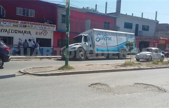 Camión cae en zanja Vecinos de Tuxtla Gutiérrez, reportan que un camión de agua, colapsó hacia una en zanja en la Novena Sur, en la Colonia Bienestar social.