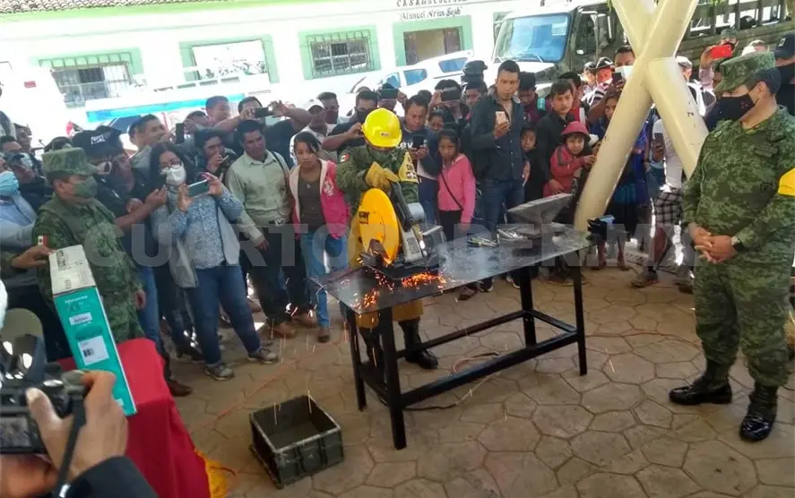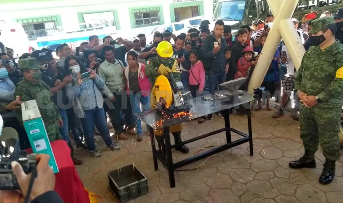 La Secretaría de la Defensa Nacional (Sedena) informó que personal militar, en coordinación con autoridades municipales, inició una campaña de canje de armas en los municipios de Aldama y Chenalhó.