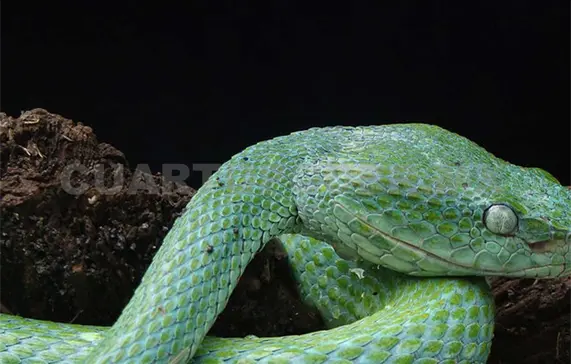 Es verde con una cabeza en forma de flecha. Suelen exhibir patrones en tonos turquesas brillantes sobre el dorso, pero también existen algunos ejemplares que son casi totalmente verdes.
