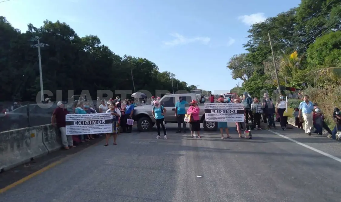 Alrededor de 150 padres de familia cerraron con vehículos la circulación en la carretera Costera en ambos carriles, con la intención de que las autoridades atiendan la problemática que se suscita al interior de esta institución educativa.