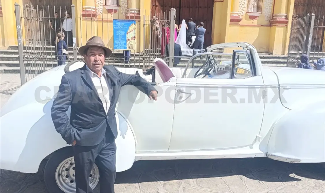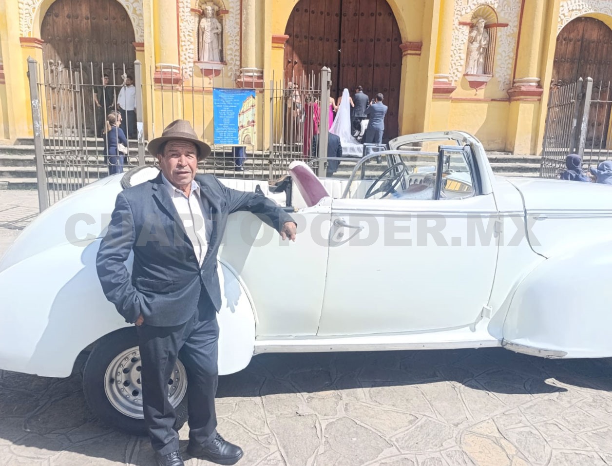 El contrato es por tres horas y cobro mil 100 pesos por hora. Voy por la novia y la llevo a la iglesia. Espero una hora a que salgan ya casados y los llevo al lugar en el que se realiza la fiesta. Llevo 45 años dando este servicio.